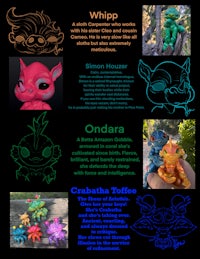 The Wild World of the Gobbles is an original fantasy universe by sculptor Ion Tallman (GrenadineSupreme). Each character is Sculpted in digital clay, brought to life in resin, produced and painted with precision, using opal, pearl and mica powders, blending folklore, toy history, and anatomical detail into uniquely articulated forms. These narrative-driven figures exist in a shared world of mystery, magic, and meticulous craftsmanship.